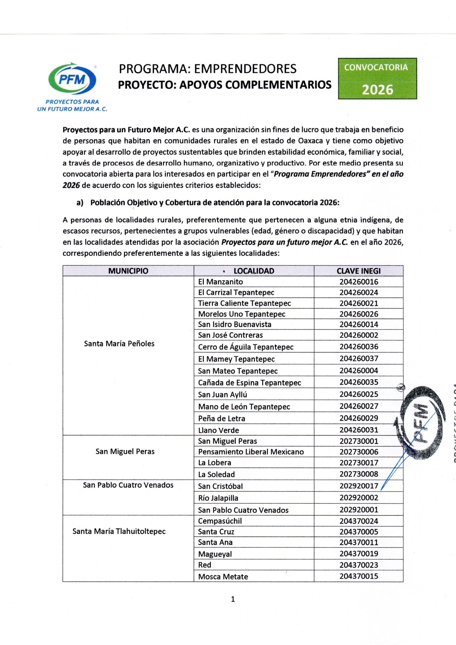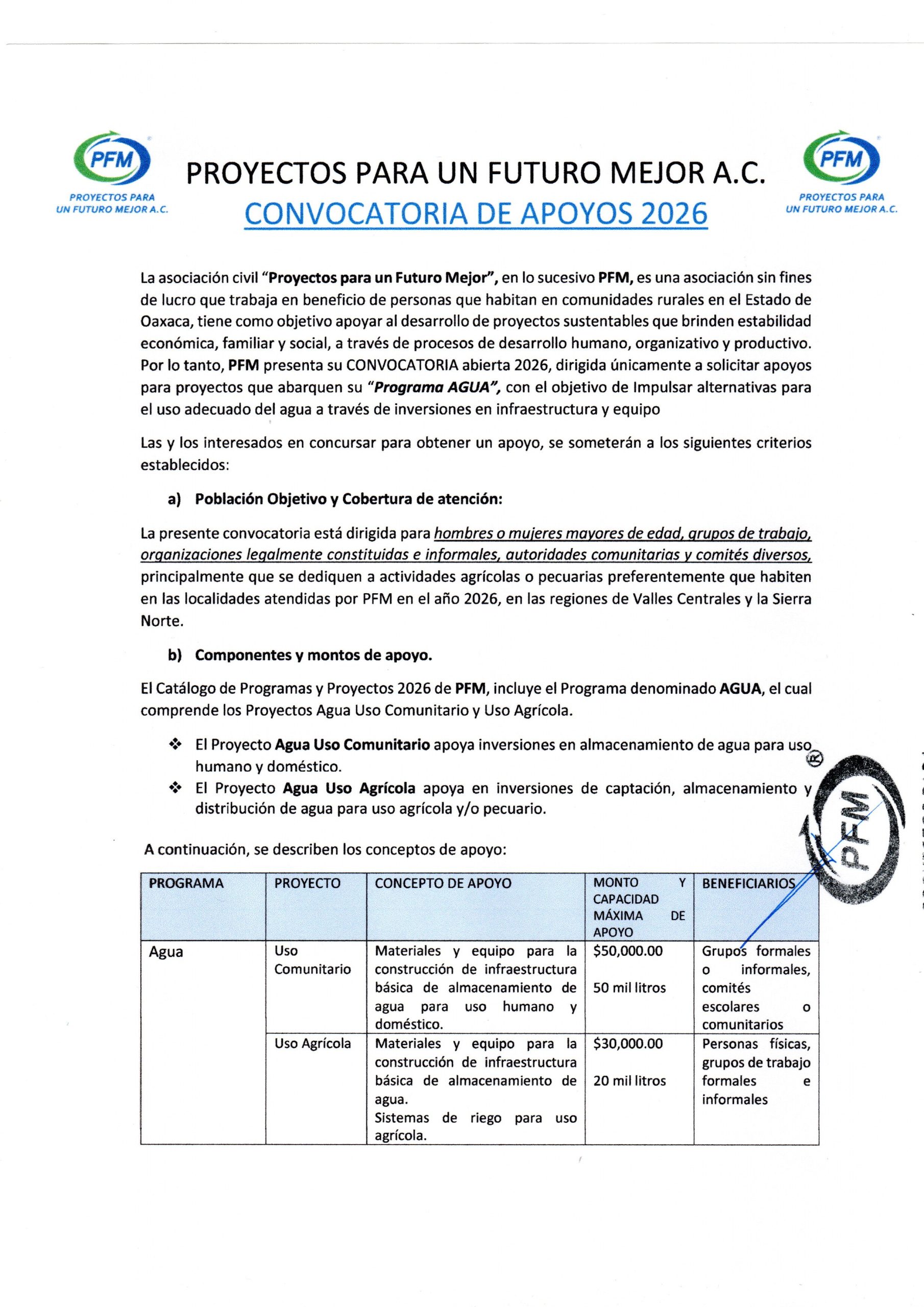 Proyectos para un Futuro Mejor es una asociación civil que desde 2003; impulsa el desarrollo sostenible y mejora la calidad de vida de las comunidades rurales de Oaxaca.