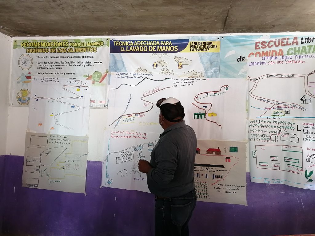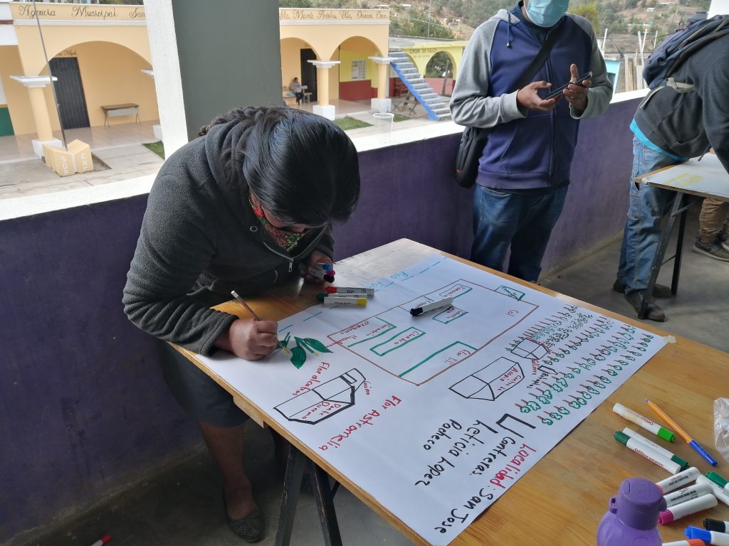 Para finalizar, cada promotor realizó a través de un dibujo la presentación de la ubicación y distribución de su unidad de producción, algo importante que PFM toma en cuenta es la inclusión de las personas hablantes de alguna lengua, en este caso los promotores de la Región Mixe realizaron su presentación hablando su lengua madre.